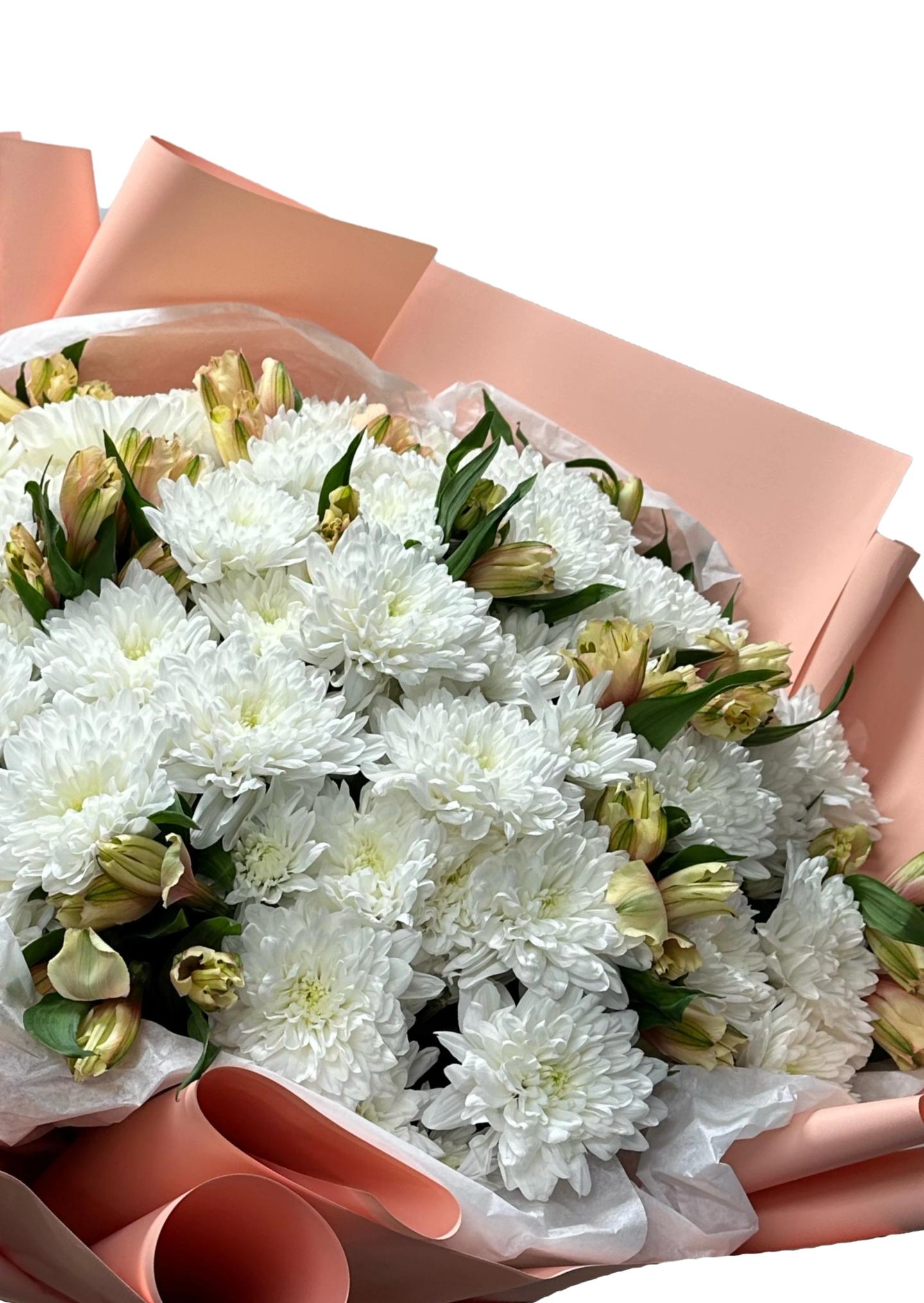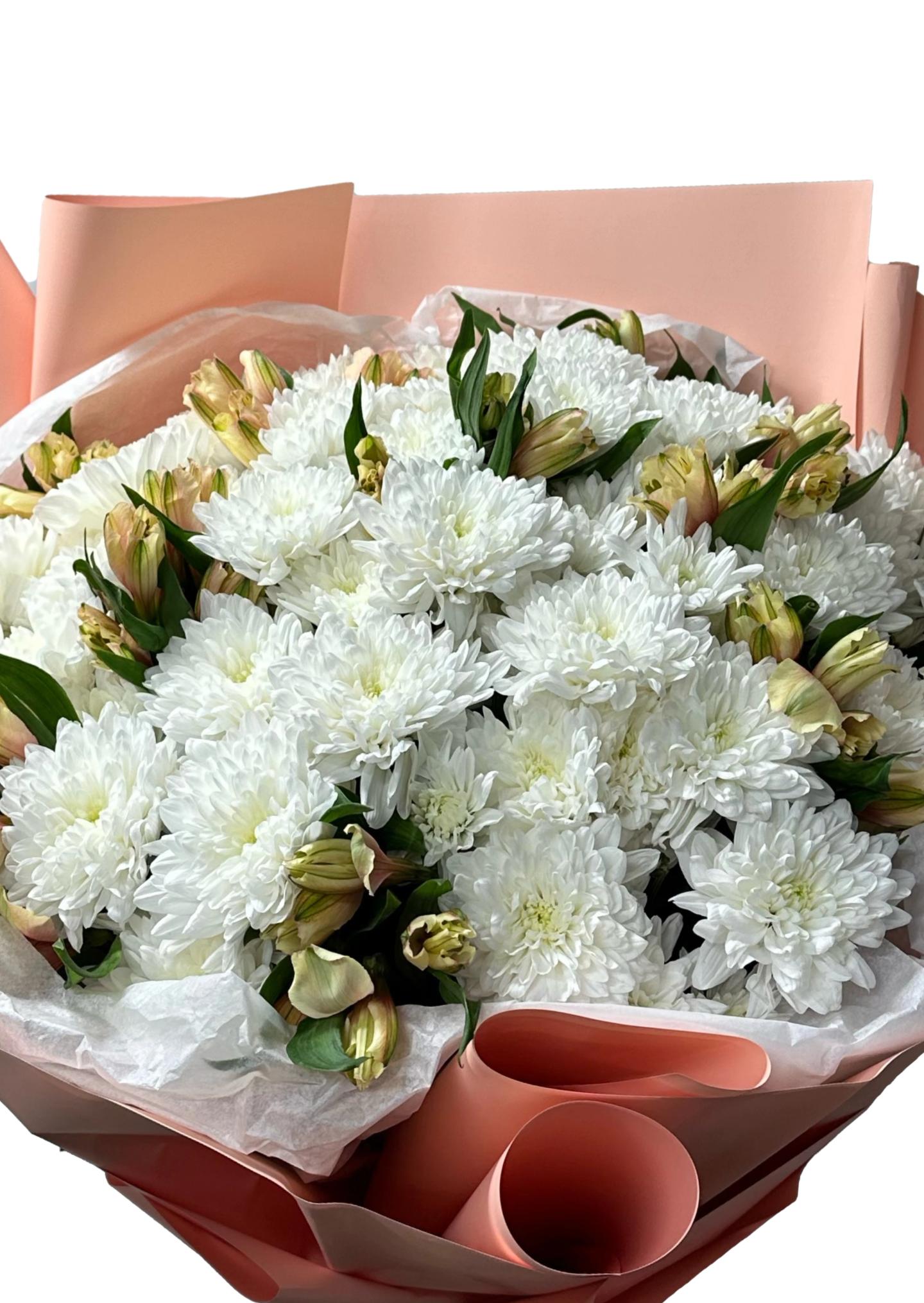 Букет хризантем с альстромерией