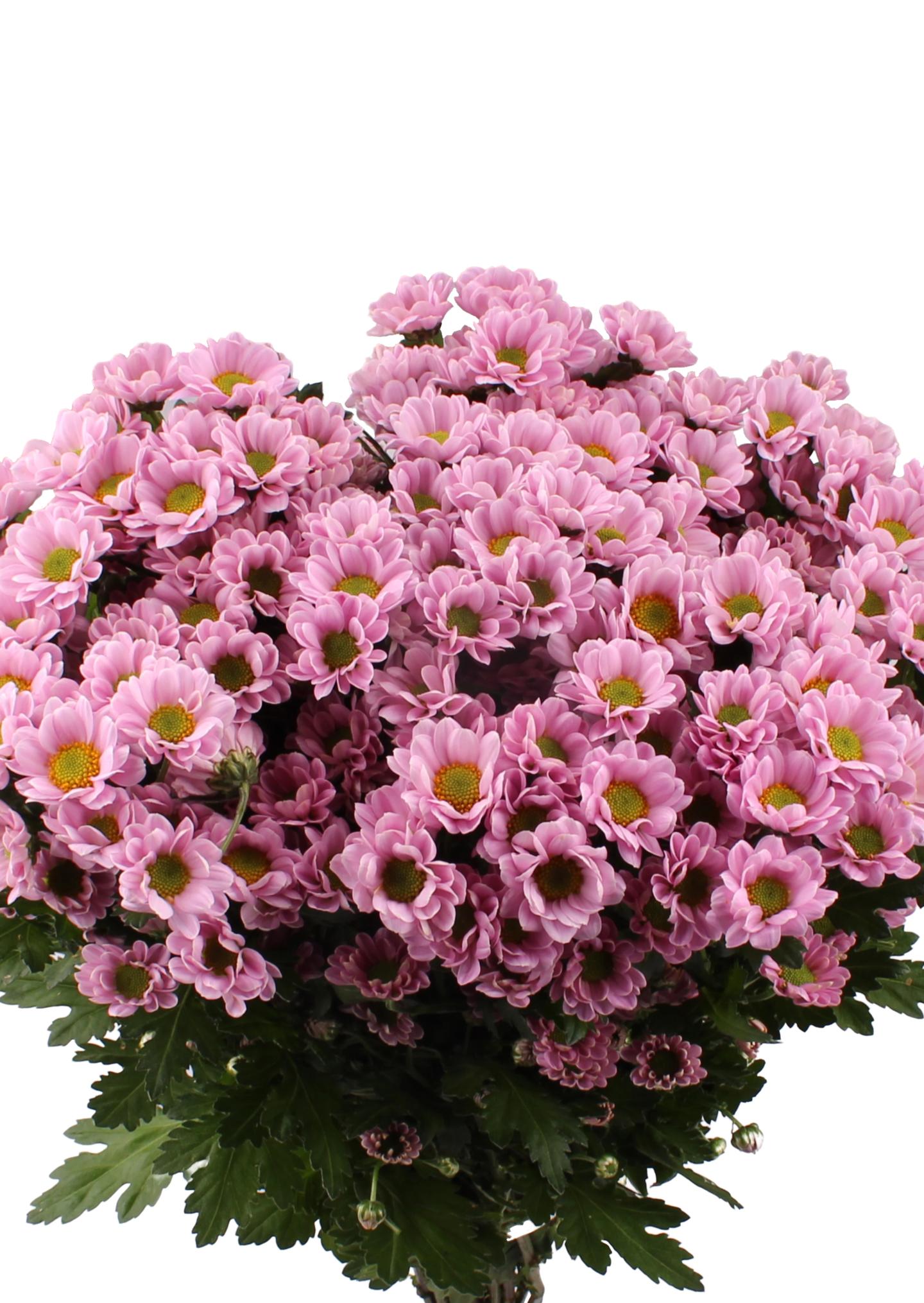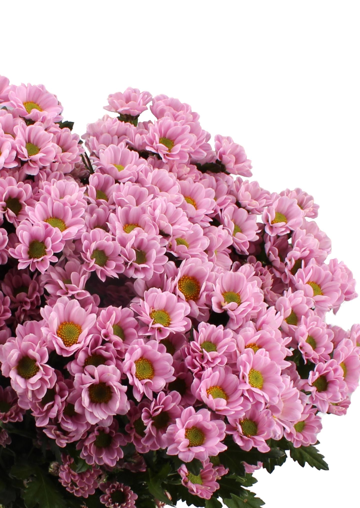 Хризантемы San Rossi Pink – элегантные цветы с нежно-розовыми лепестками и яркой зелёной сердцевиной. Отличаются длительной стойкостью, идеально подходят для букетов и украшения интерьера. Символ нежности и радости, создают уют и дарят красоту!